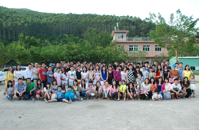 公司员工及部分家属雷公峡漂流山脚集体合影: