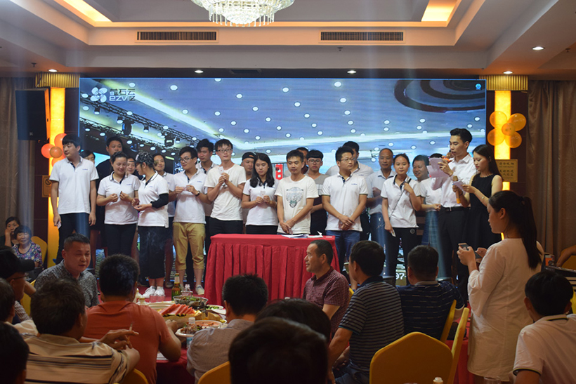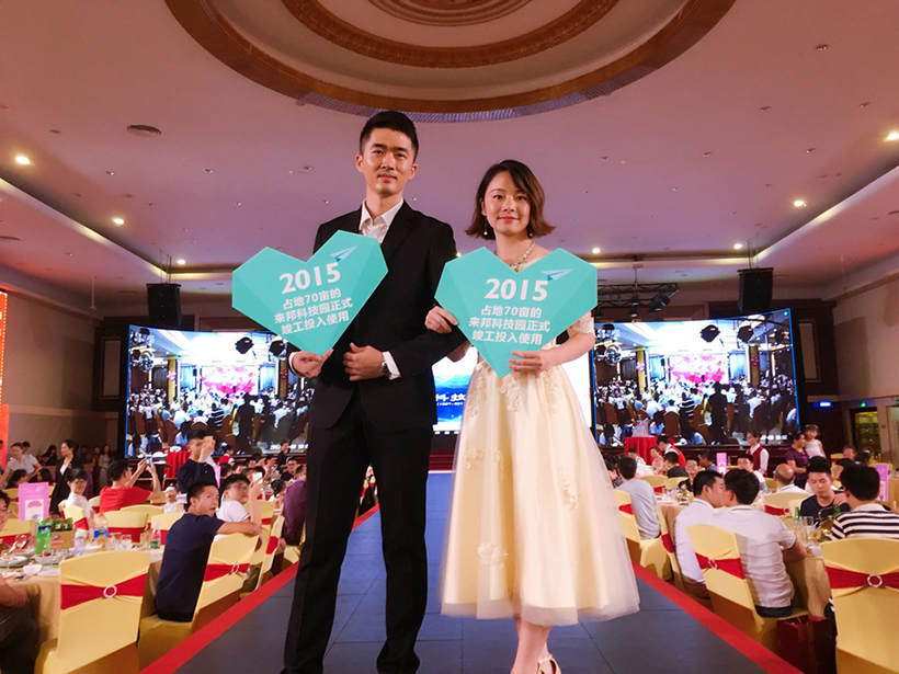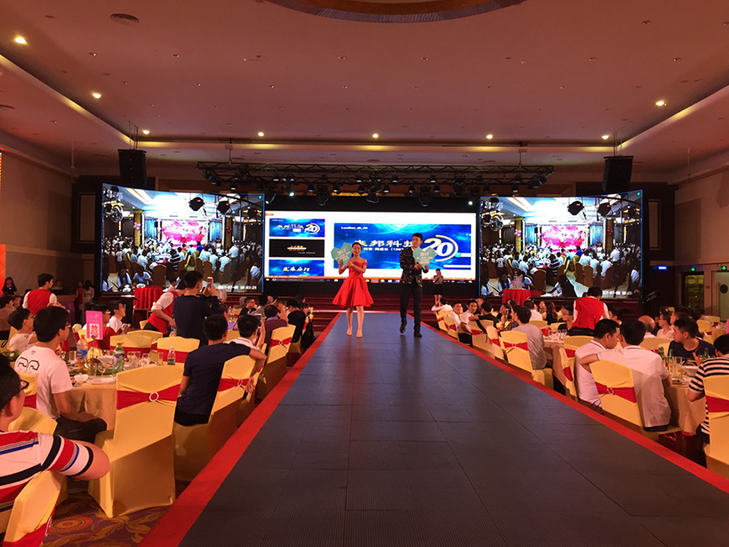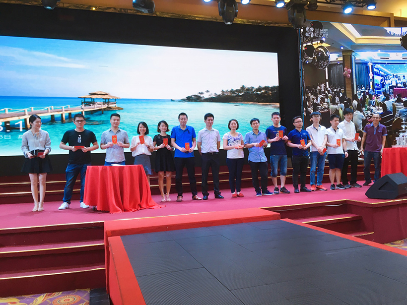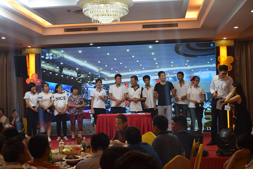晚上17:00,为两地联欢晚会开幕时间,活动内容分为开幕致辞、员工表演、表彰老员工、激情抽奖四个篇章,公司全体员工、代理商、应邀嘉宾及部分员工家属齐聚庆典晚会现场。