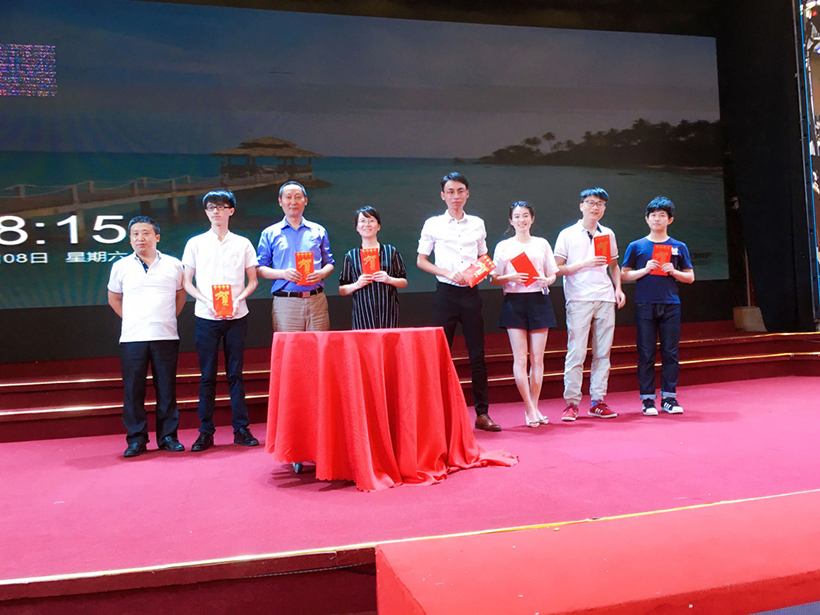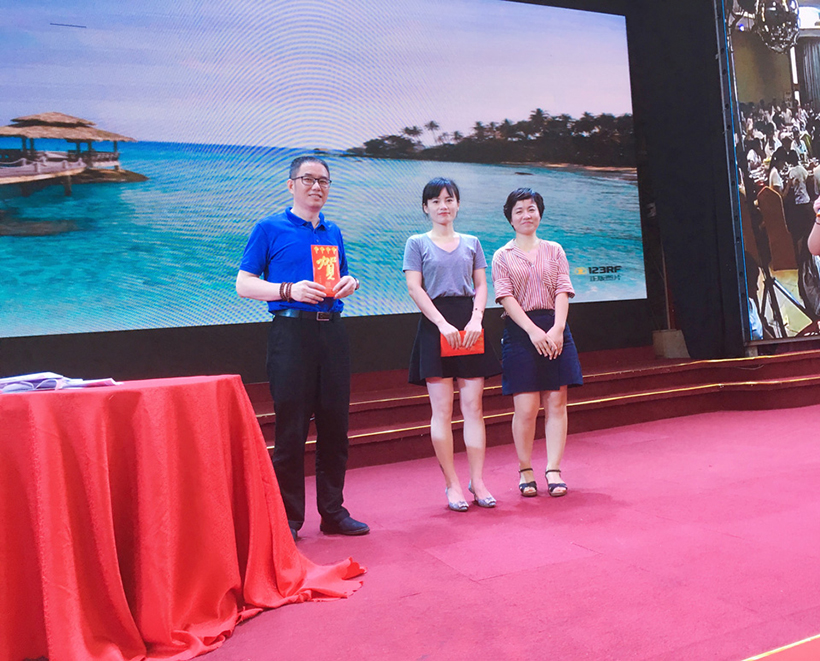 庆典现场,公司分别表彰了工龄超过10年、15年的优秀老员工,副总经理李秋生、副总经理戴露军、财务总监阮文、董事长潘晓亭分别为获奖员工颁发了价值5000元、8000元的纯金奖章。