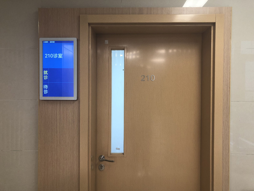 ④诊室门口的病人可通过液晶屏查看当前诊室医生信息以及诊室号、就诊病人姓名、就诊号码信息等。