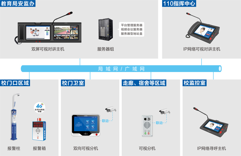 接警人员可通过接警平台、主机、微信、手机与报警现场终端双向对讲,及时威慑、制止欺凌行为。