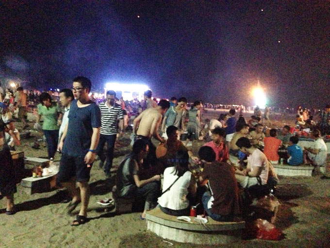 沙滩自助烧烤中: