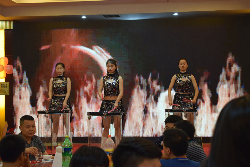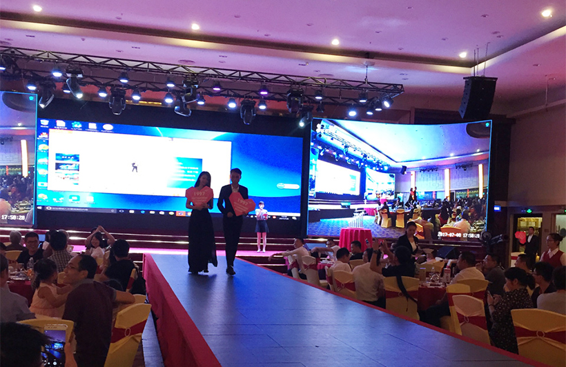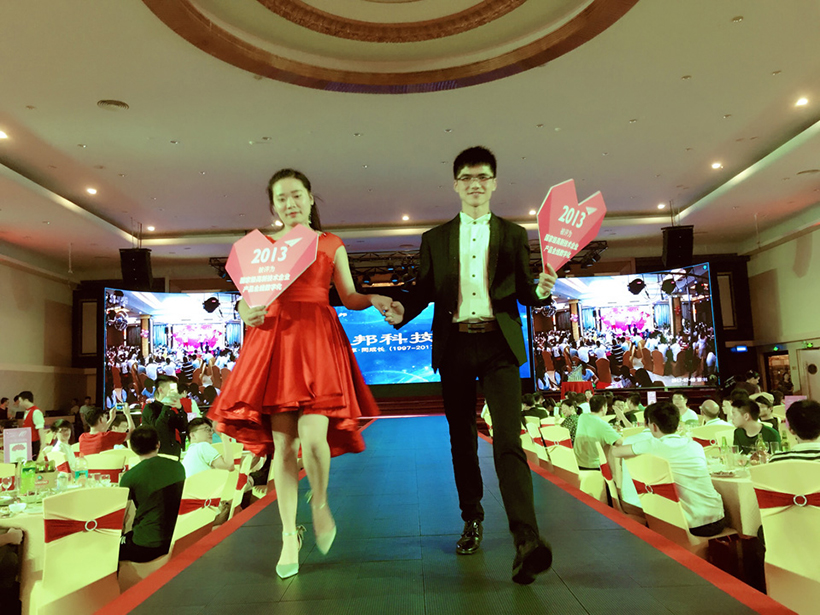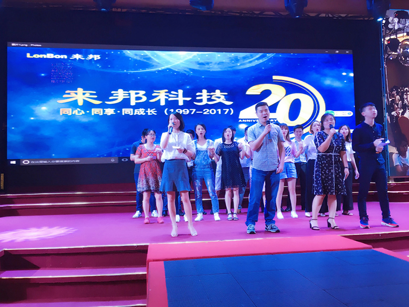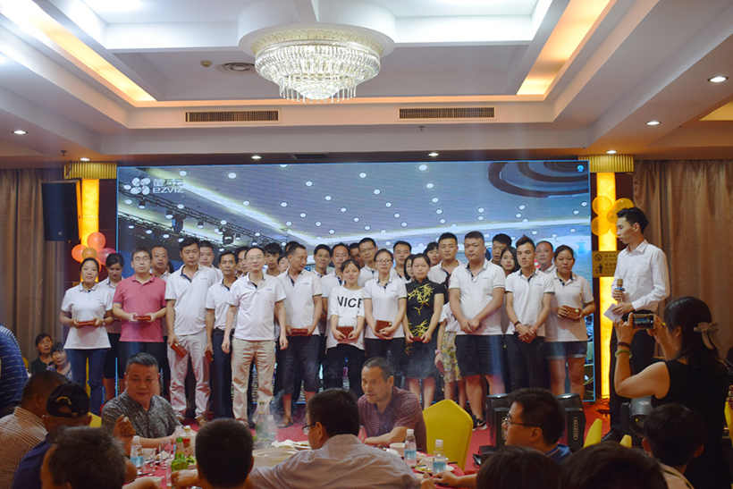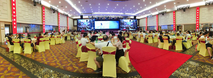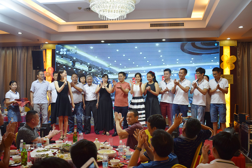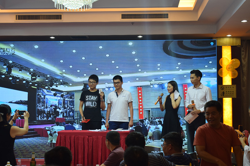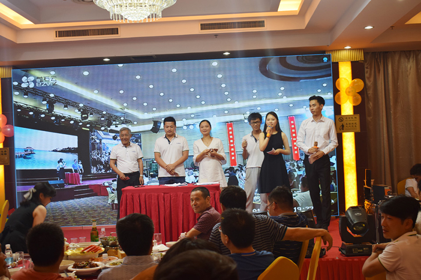 晚上17:00,为两地联欢晚会开幕时间,活动内容分为开幕致辞、员工表演、表彰老员工、激情抽奖四个篇章,公司全体员工、代理商、应邀嘉宾及部分员工家属齐聚庆典晚会现场。