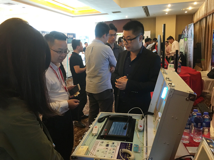 作为中国安防行业领先的安防专用对讲产品及整体解决方案提供商,db旗舰官网科技在产品展示区域,集中展示了应用于安防行业最新的医院、银行、监狱专用对讲新产品,吸引了南昌站点的现场观众的广泛关注。会上,db旗舰官网科技常务副总经理王庆现场分享了安防行业内db旗舰官网医院、银行、监狱专用对讲领域新产品的领先技术和智慧整体解决方案的应用。其中,医院领域应用到的新产品“一键式报警监控对讲系统”以及涵盖医院住院部、门诊部、公共区域的智能医护整体解决方案;银行领域应用到的新产品“窗口监控对讲系统”以及涵盖银行营业厅、自助区及加钞区的整体解决方案;监狱领域应用到的新产品“智能监仓对讲系统”以及监狱专业特有的创新智能化特色产品功能应用和整体解决方案,备受南昌站点的现场观众高度好评与青睐。