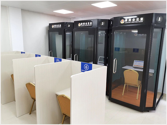 智慧监室,在生物识别技术智能应用的加持下,被监管人员可通过监室智能交互终端,实现信息采集验证、信息查询、自助点名等以及在线购物、预约申请、一键报警、可视对讲等多项智能服务;民警可借助具有信息交互功能的监仓门口机,实现夜岗处警、巡更签到以及查看监室概况、智能电教等多项智能功能操作;家属会见区,可通过人证合一、自助登记实现会见排队叫号与会见对讲,并能通过语音识别技术,将被监管人员和家属的谈话内容实时转换成文字,并能对出现的关键词进行智能检测报警提示,提升会见智能安全管控水平;律师远程会见中心,可支持辩护律师或家属与被监管人员远程视频会见、以及展示相关诉讼材料和会见笔录等,并能对会见视频画面录音录像,大大提升监所会见效率和便捷水平。