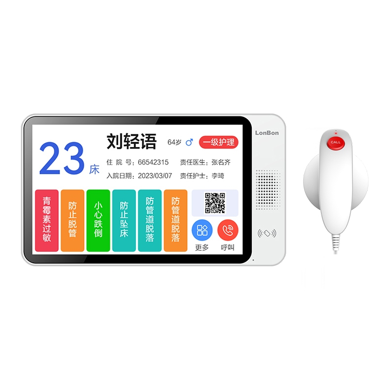 ? 具有手持呼叫、呼叫解除、双工对讲、紧急增援、换药提醒、护理代接、吸氧计时、信息显示、费用查询、医嘱报告查询、