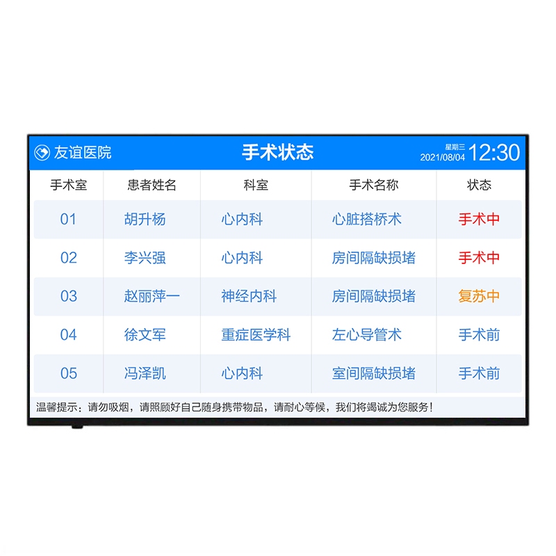 手术信息显示屏 — 1. 手术公告显示屏 —