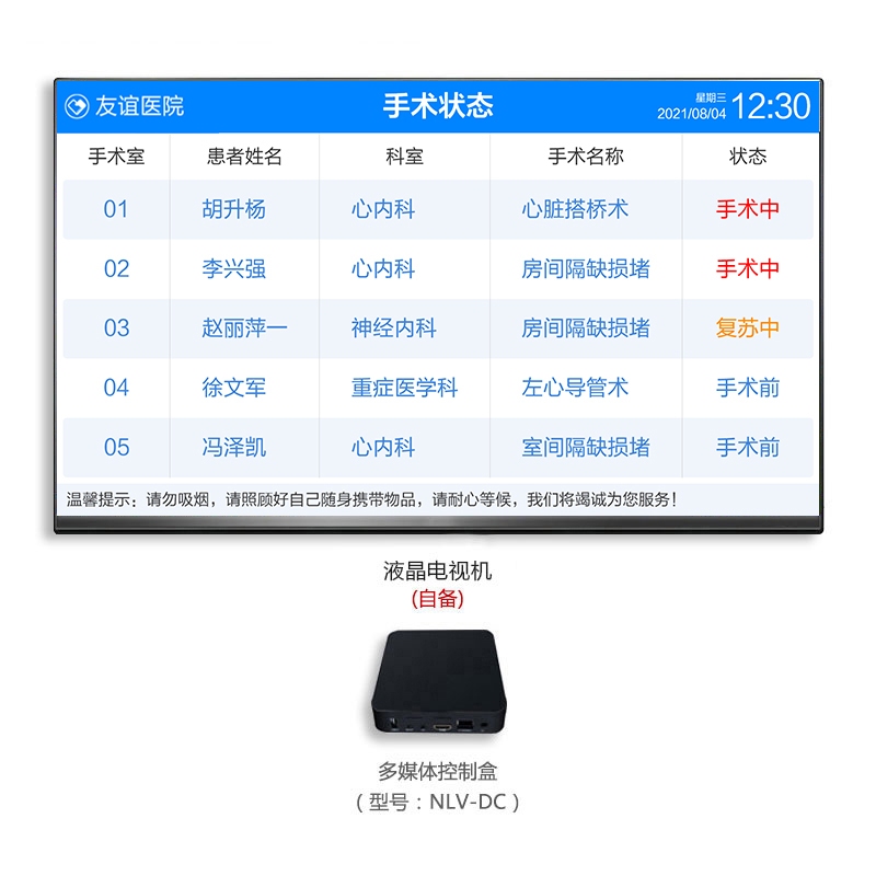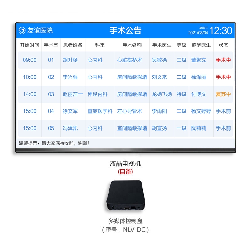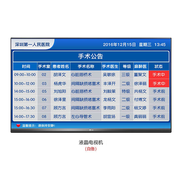 ? 可作为手术公告显示屏使用,具有信息显示、数据同步等功能。