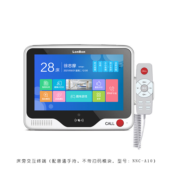 ? 具有可视对讲、视频探视、换药提醒、信息显示、费用查询、刷卡签到、蓝牙体征设备对接等功能。