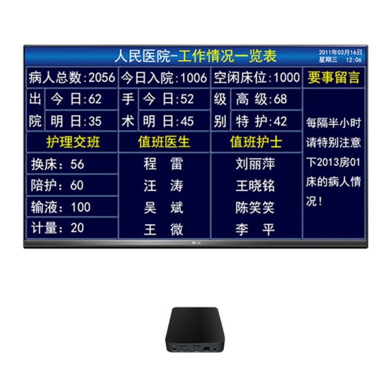 走廊显示屏、病员一览表