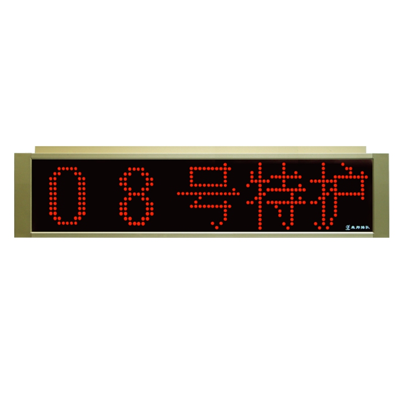 铝合金边框,双面单行五汉字滚动显示,吊装在病区走廊。