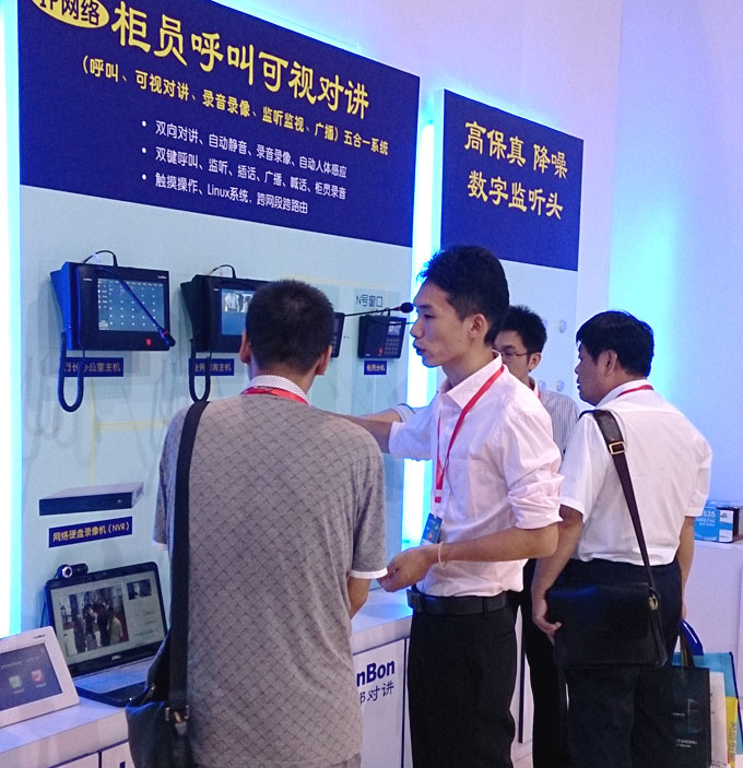 新闻中心 2014中国国际金融银行技术暨设备展览会,于2014年8月28日-31日在北京市举办,是亚太地区影响力最大、规模最大的金融展会,也是国家科技部和中国人民银行批准的国内唯一的国际性金融展览。此次我公司展出专用于银行的“银行ATM求助可视对讲”、“柜员呼叫可视对讲”、“排队机”、“高保真 降噪 数字监听头”四大系列新款产品,并为客户提供新的解决方案。欢迎新老顾客莅临、参观指导。